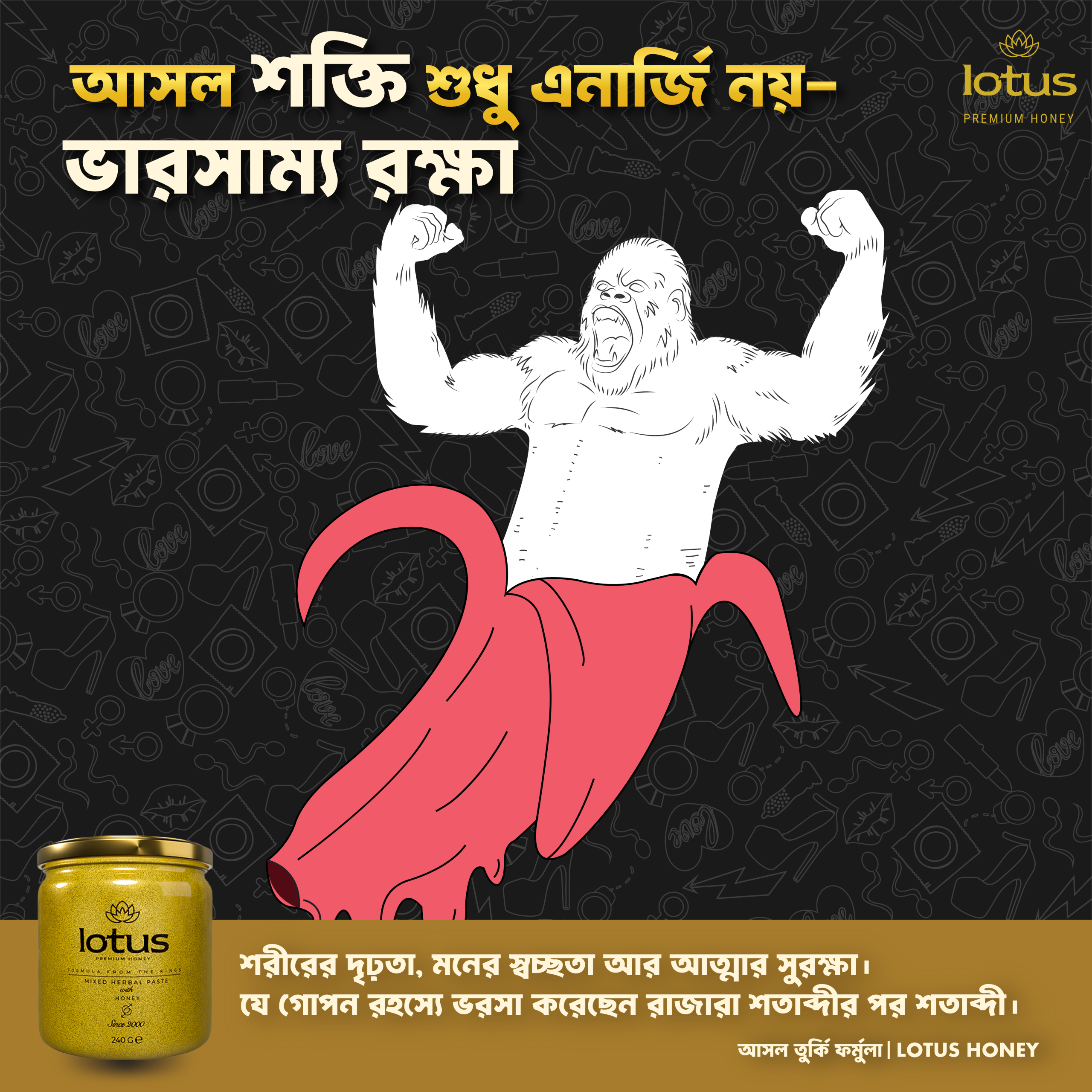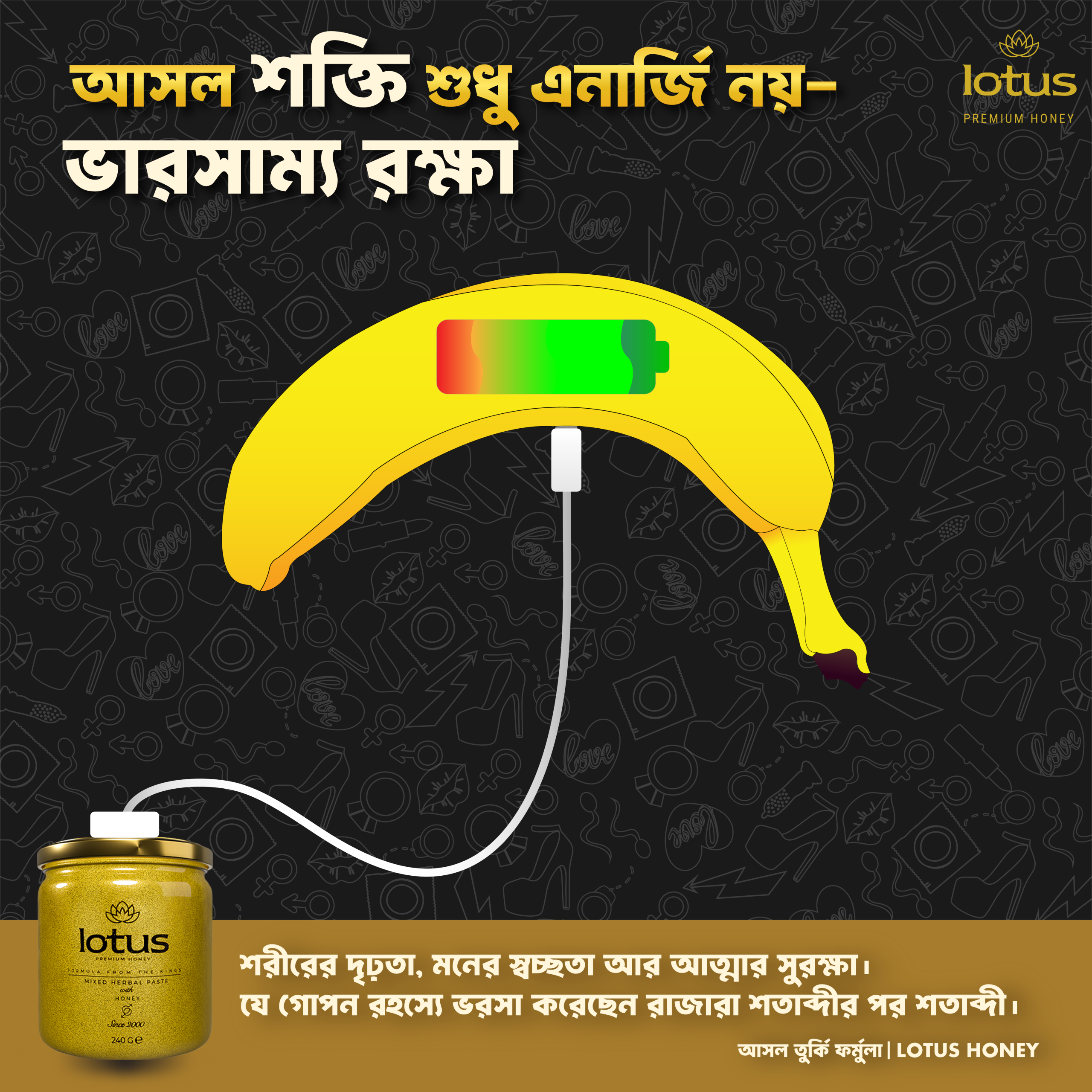 LOTUS HONEY একটি প্রিমিয়াম, উচ্চমাত্রায় ঘন পণ্য, যার নিশ্চিত প্রভাব ৭২ ঘণ্টা পর্যন্ত স্থায়ী হয়। এটি ১০০% প্রাকৃতিক, ভেষজ-ভিত্তিক এবং কোনো রাসায়নিক সংযোজন ছাড়া তৈরি, যা ১৮ থেকে ৬৫ বছর বয়সীদের জন্য নিরাপদ।